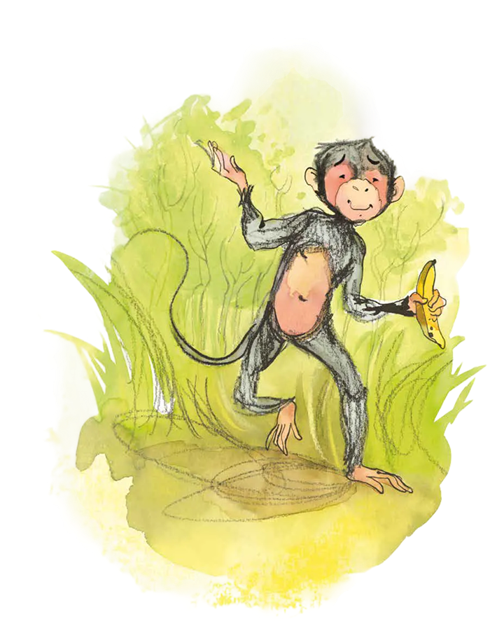 Terwijl Sabri smikkelt vertelt meester Baran het ene verhaal na het andere. Over het oerwoud en hoe het oerwoud er lang geleden uitzag. En dat er vroeger ook nog heel veel andere dieren leefden. De kleine dieren luisteren ademloos.