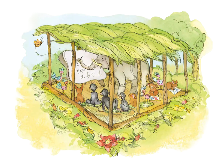 Schildpad is oud, die hoeft niet meer naar school. Maar hij vindt het gezellig om bij school rond te scharrelen.