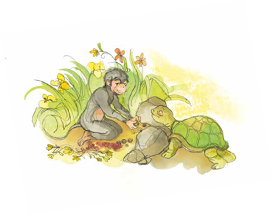 “Dank je Schildpad, ik wist niet eens dat ik zong. Ik was te druk met het bewaren van de lekkere glanzende bessen en noten.”